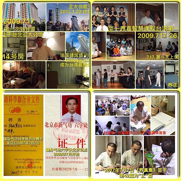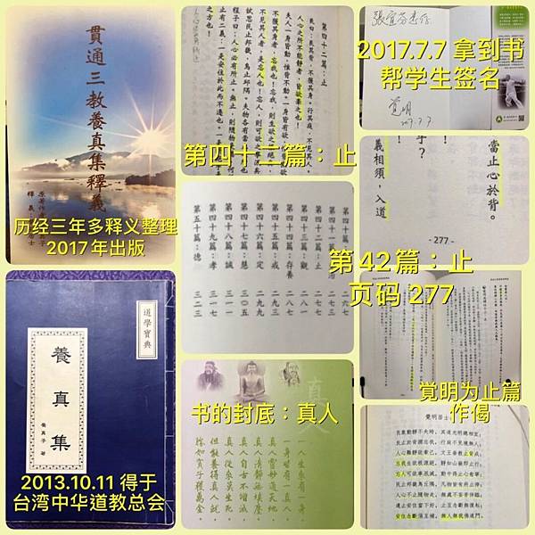 覚明從事氣功養生三十餘年,國際氣功科學聯合會發的證件日期為2007年7月7日;參加國家體育總局創編「六字訣」新功法,北京市發的證件有效期2002年7月一12月;2017年7月7日《養真集》簽書第42篇為「止」篇……。